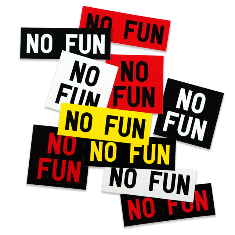 These are the original, authentic, real deal No Fun® stickers—don't be fooled by imitators. Want even bigger stickers?! Get our XL sized bumper stickers here.